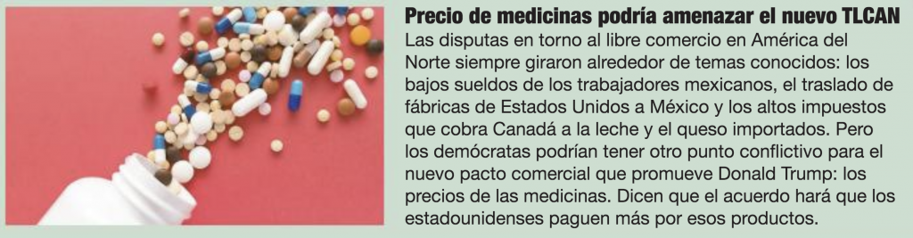 View Larger Image Precio de medicinas podría amenazar el nuevo TLCAN by El Vocero admin2019-02-13T20:22:22+00:00February 13, 2019|PIA Recent News|Comments Off on Precio de medicinas podría amenazar el nuevo TLCAN Share This Story, Choose Your Platform! FacebookXBlueskyRedditLinkedInWhatsAppTelegramTumblrPinterestXingEmail Related Posts 2024 Leadership Summit Empowering Voices to Lead Purposefully Gallery 2024 Leadership Summit Empowering Voices to Lead Purposefully 34th Annual Meeting Gallery Gallery 34th Annual Meeting Gallery 21st Regulatory Conference Gallery Gallery 21st Regulatory Conference Gallery PIA is recognized with “Premio Altruismo 2022” Gallery PIA is recognized with “Premio Altruismo 2022”